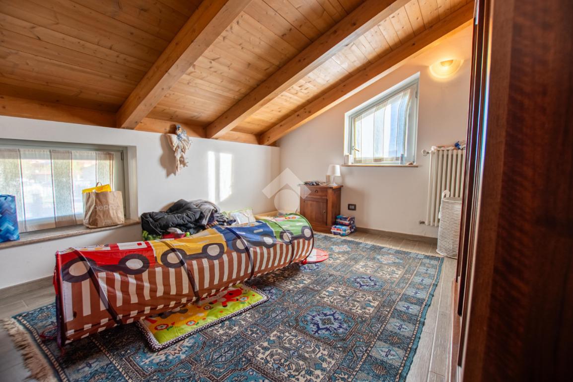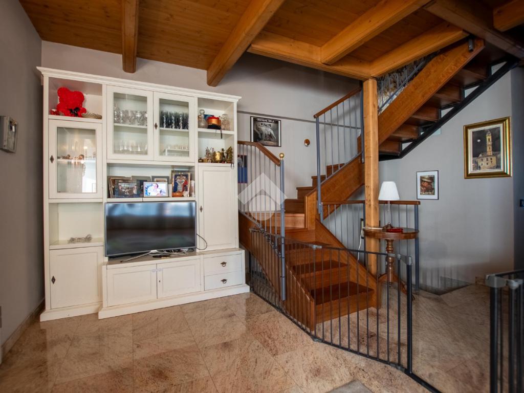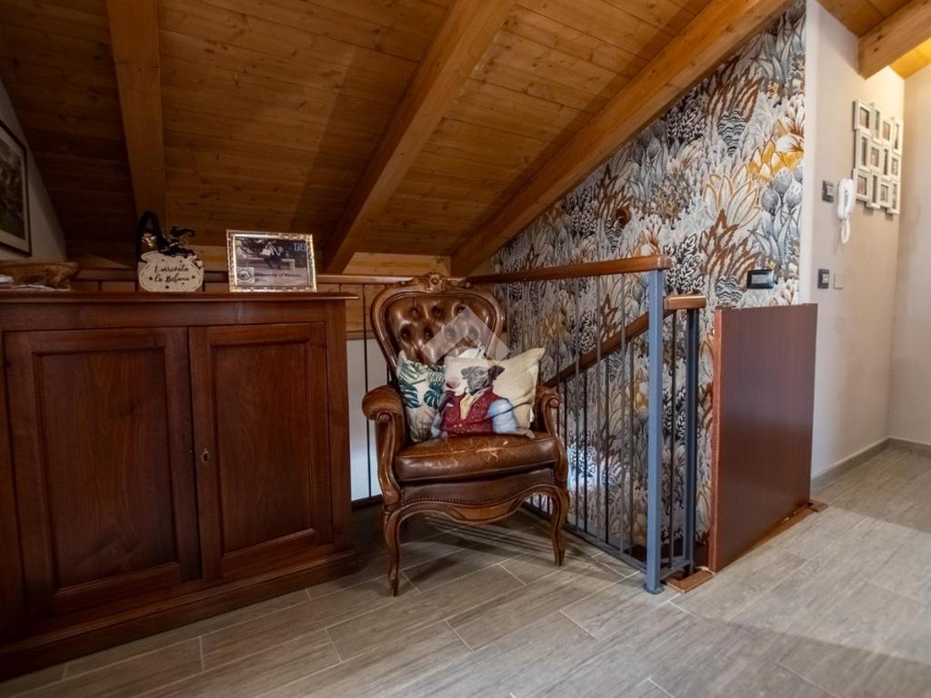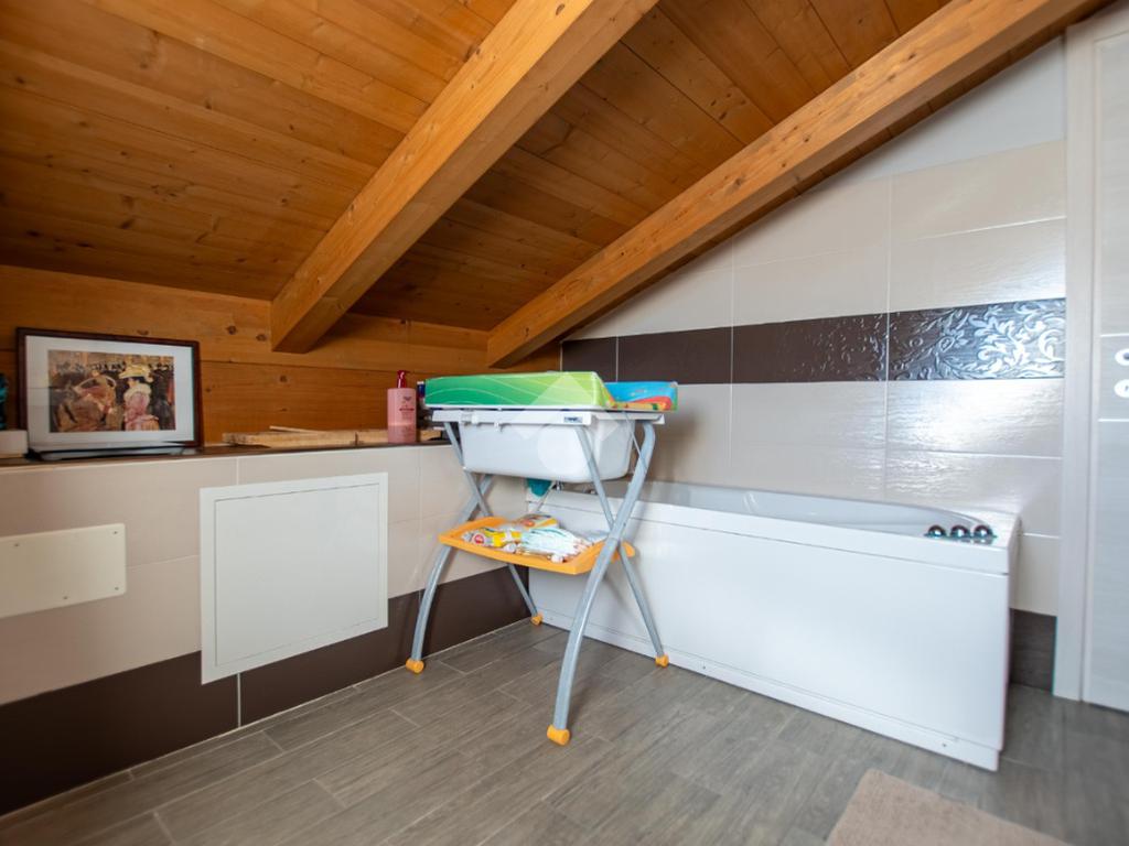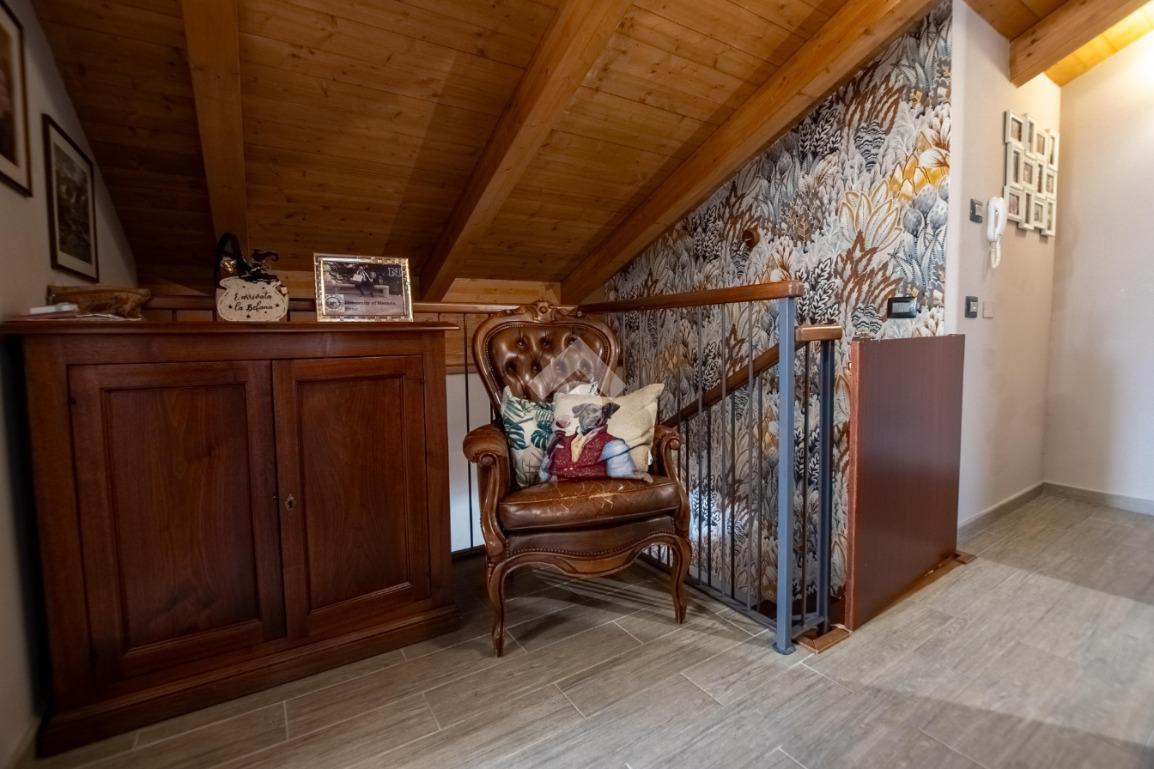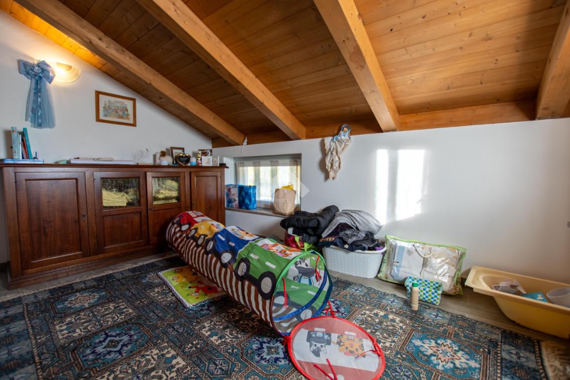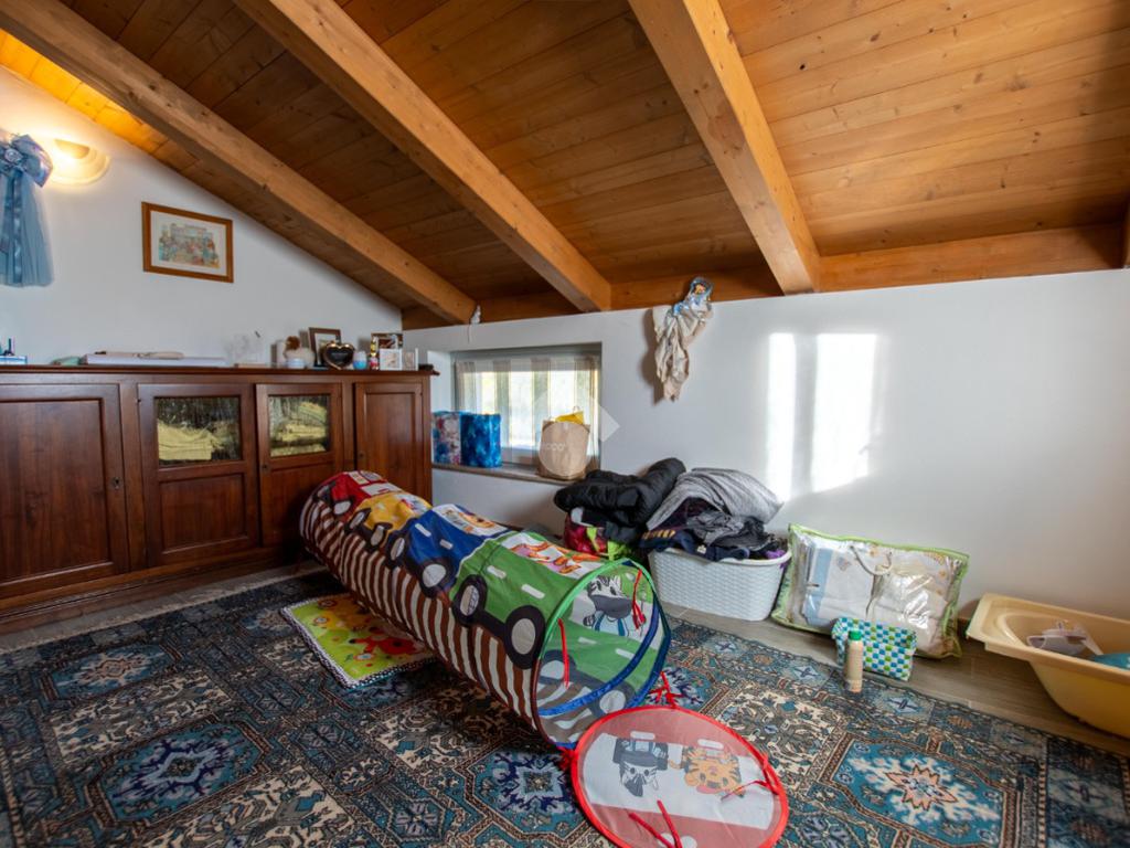 - la scala in legno porta al piano superiore che è formato da un locale unico utilizzabile a piacimento (sala giochi, camera da letto...).