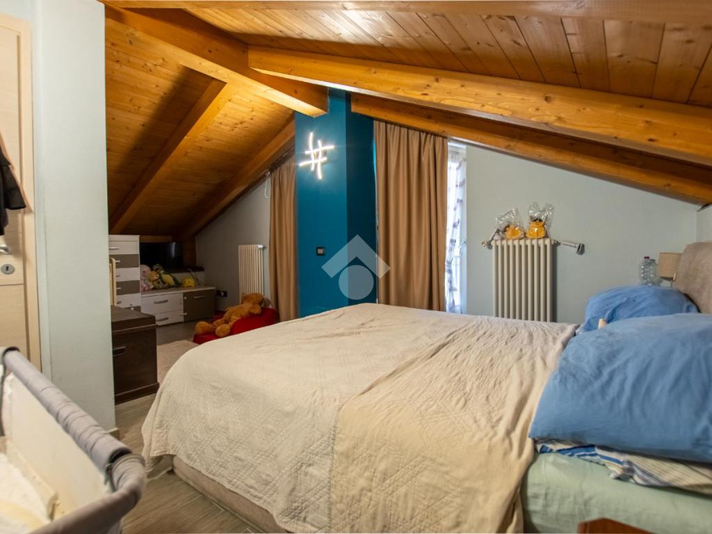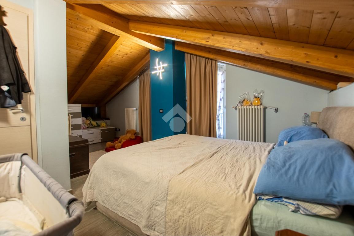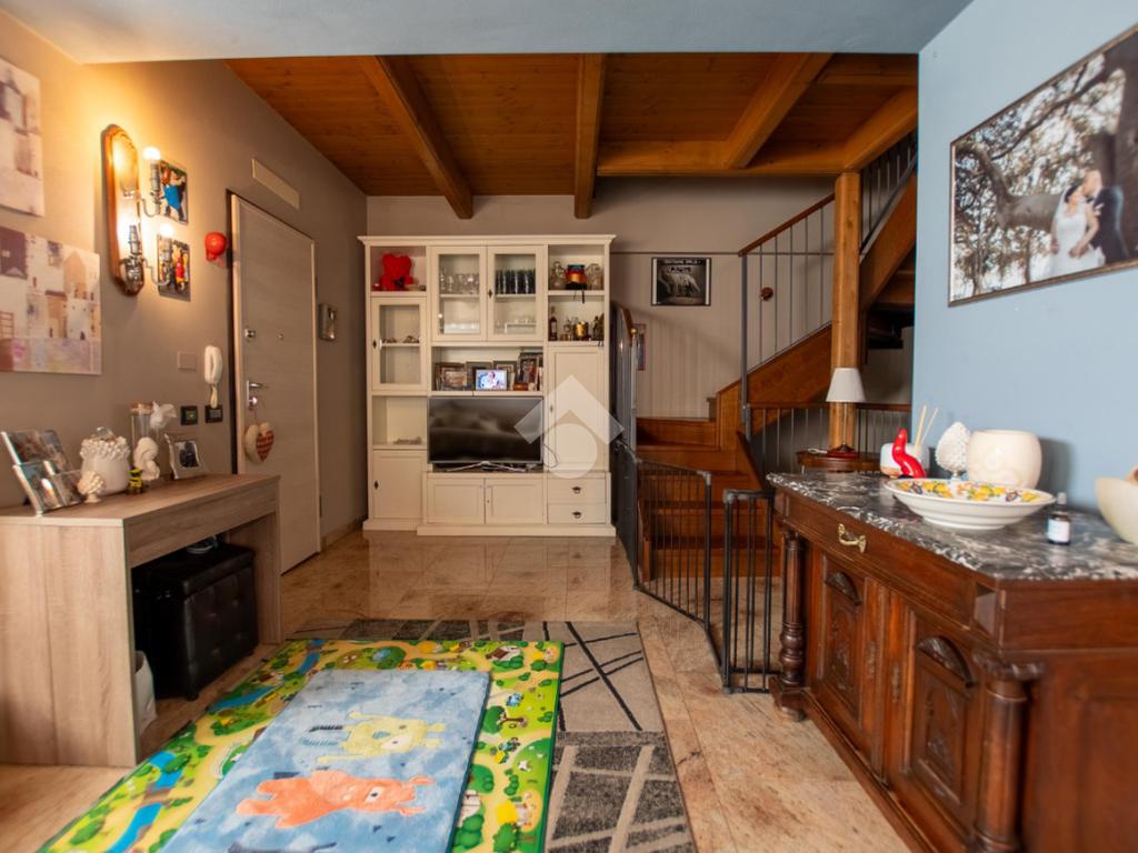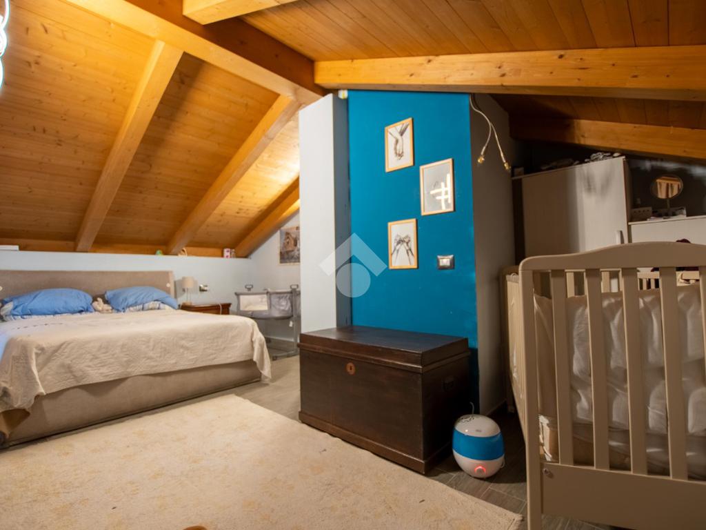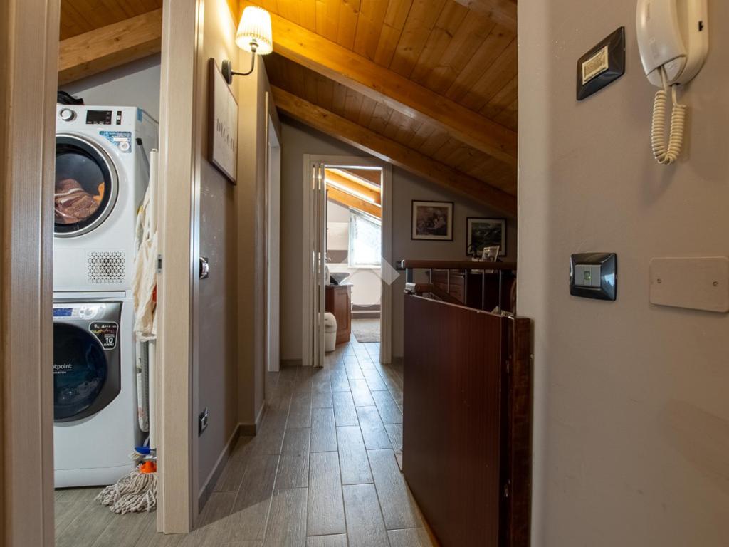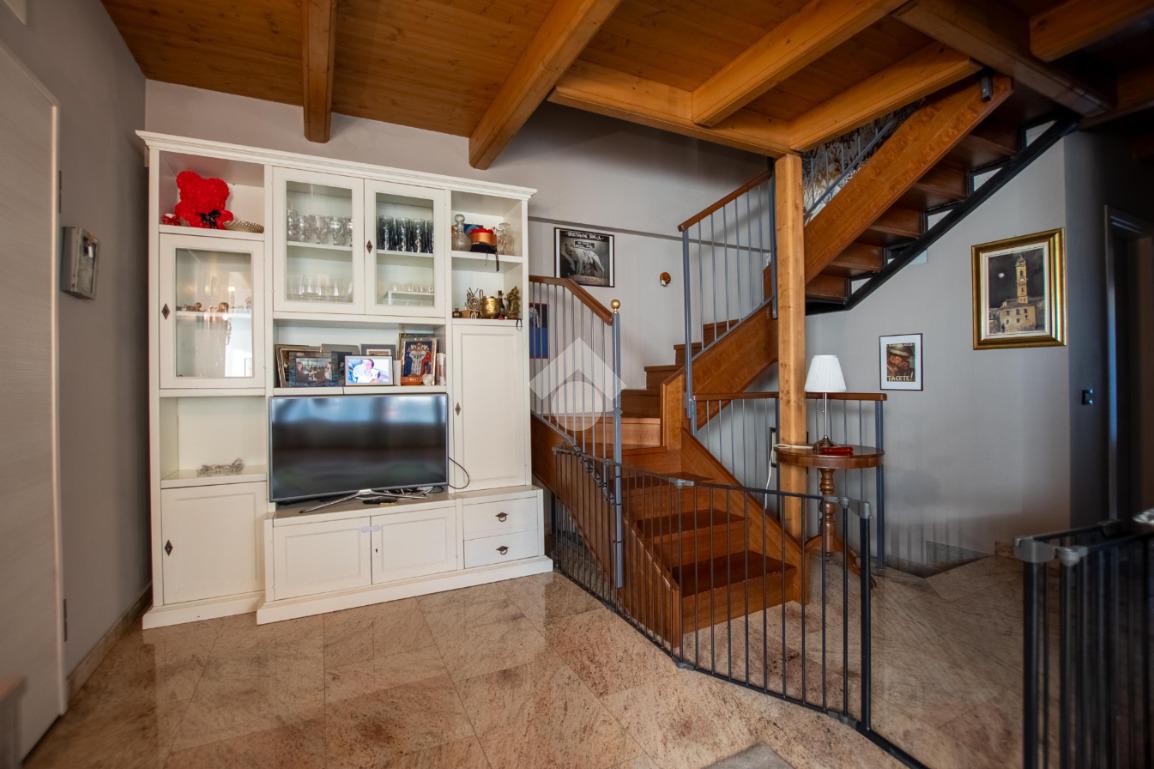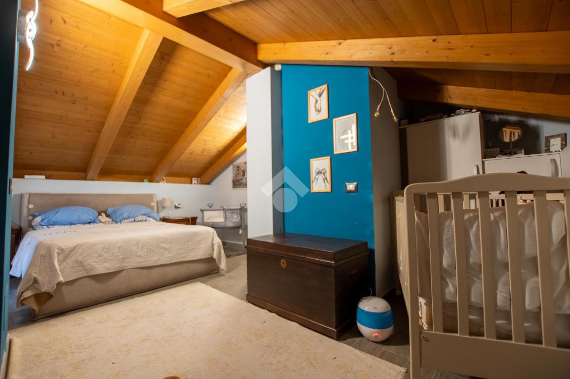 - la scala in legno porta al piano superiore che è formato da un locale unico utilizzabile a piacimento (sala giochi, camera da letto...).