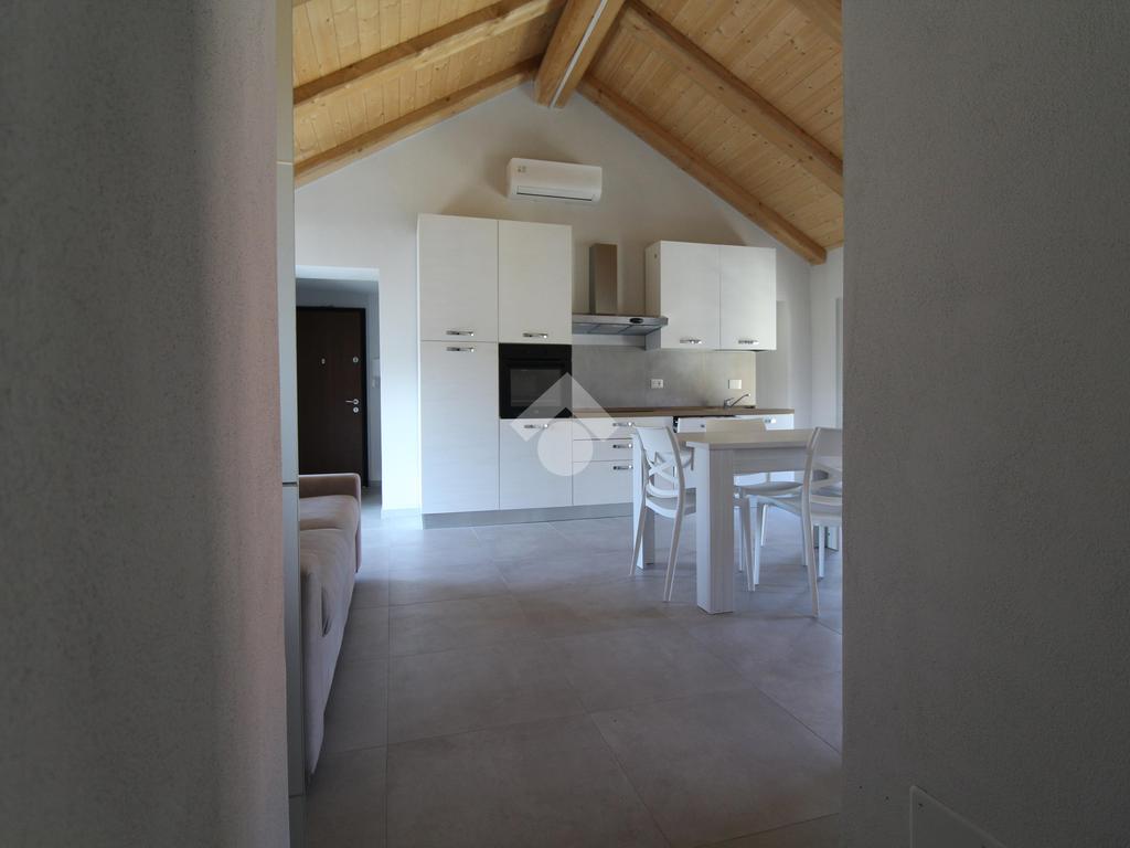 Formato da: soggiorno con angolo cottura, disimpegno, camera da letto matrimoniale e bagno finestrato con doccia.