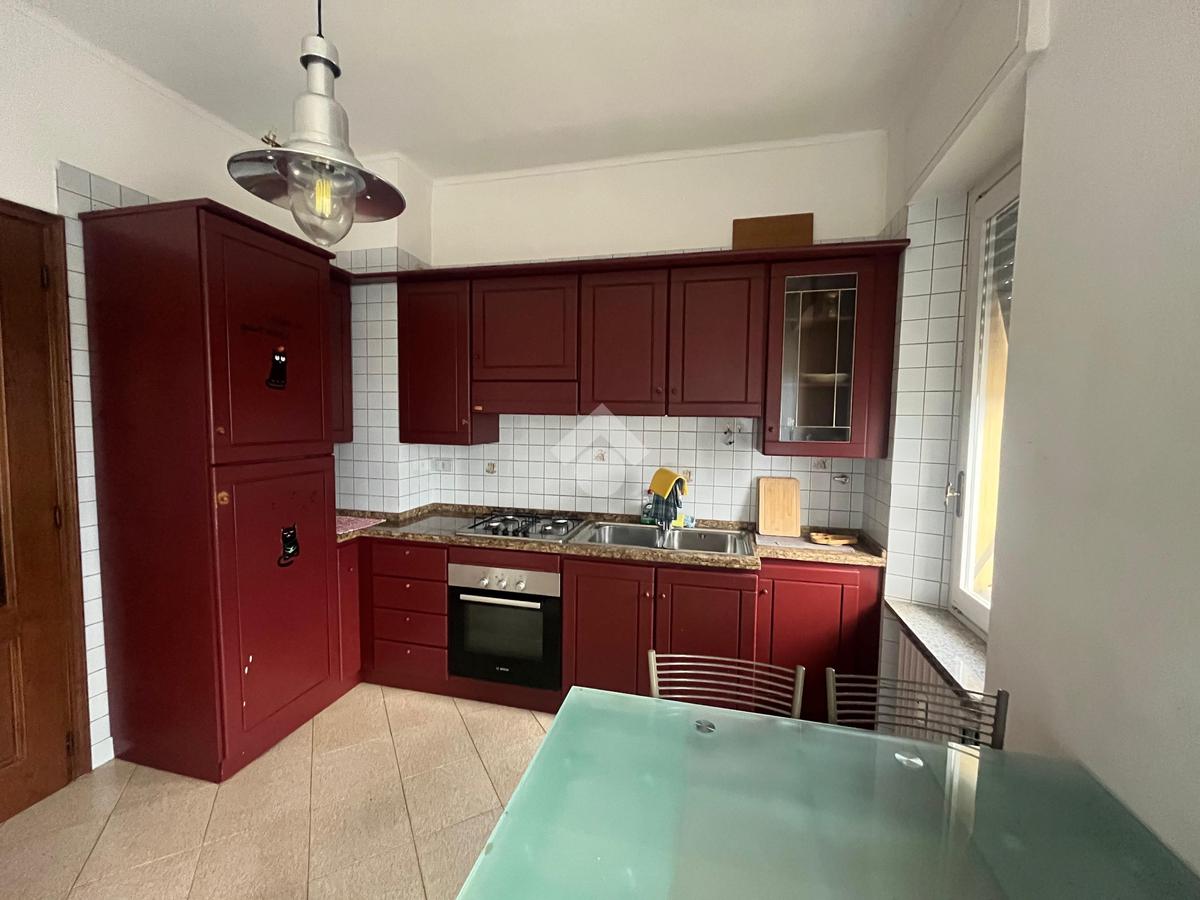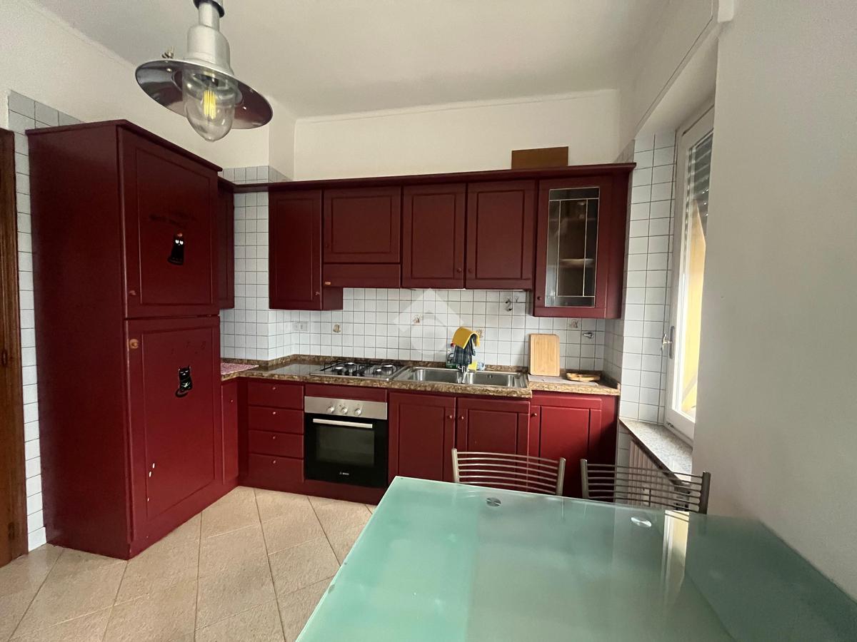 Formato da ingresso in disimpegno che collega tutte le stanze: soggiorno, cucina abitabile, camera da letto matrimoniale e bagno finestrato.