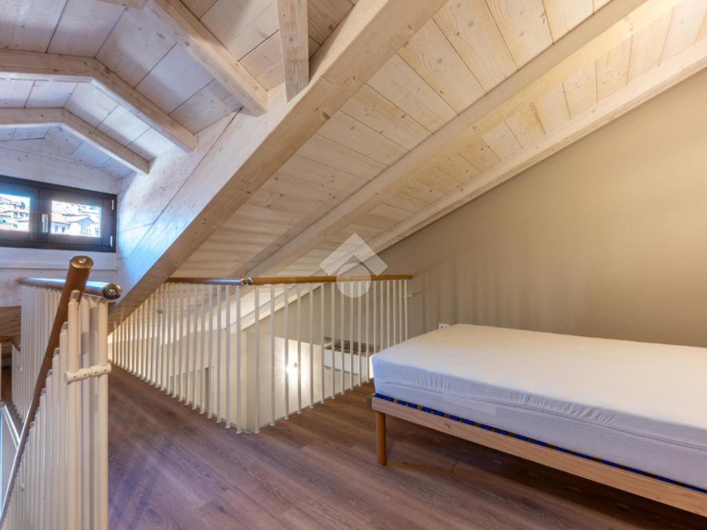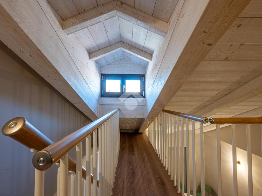 Salendo la scala di legno arriviamo alla zona soppalcata che ospita la camera da letto.