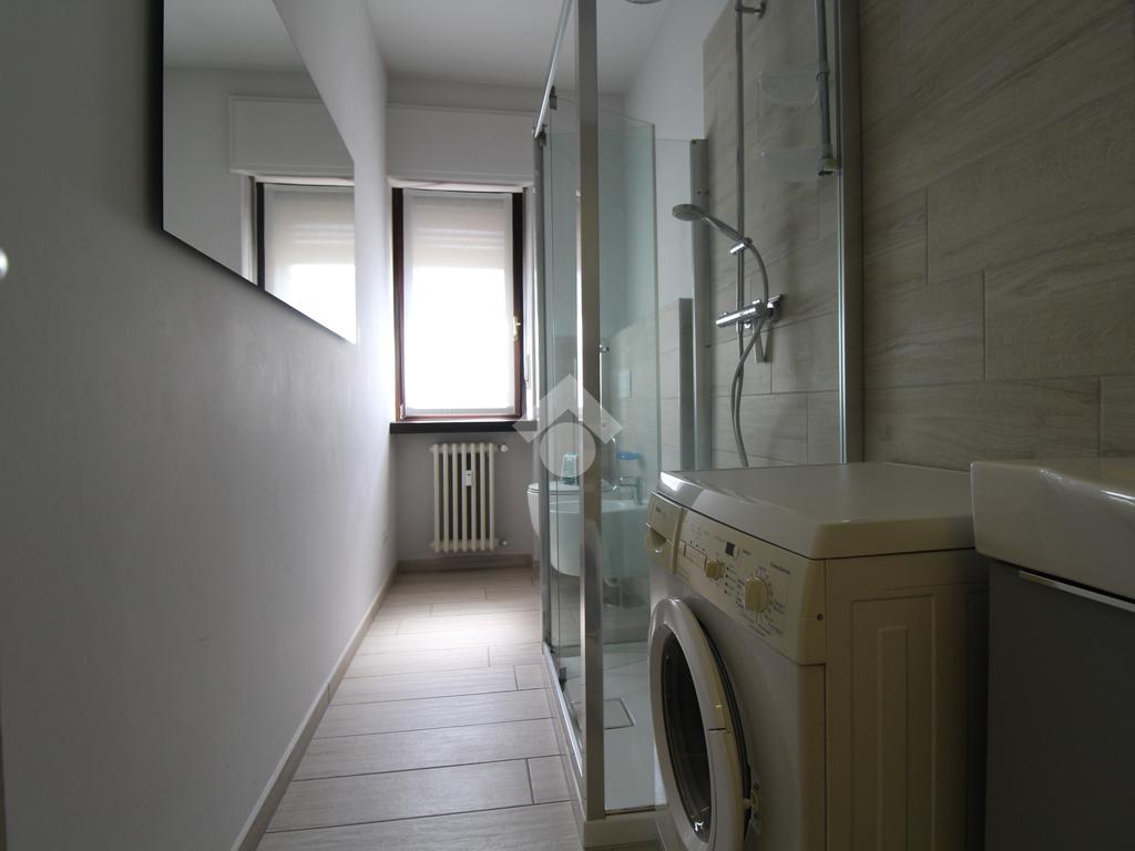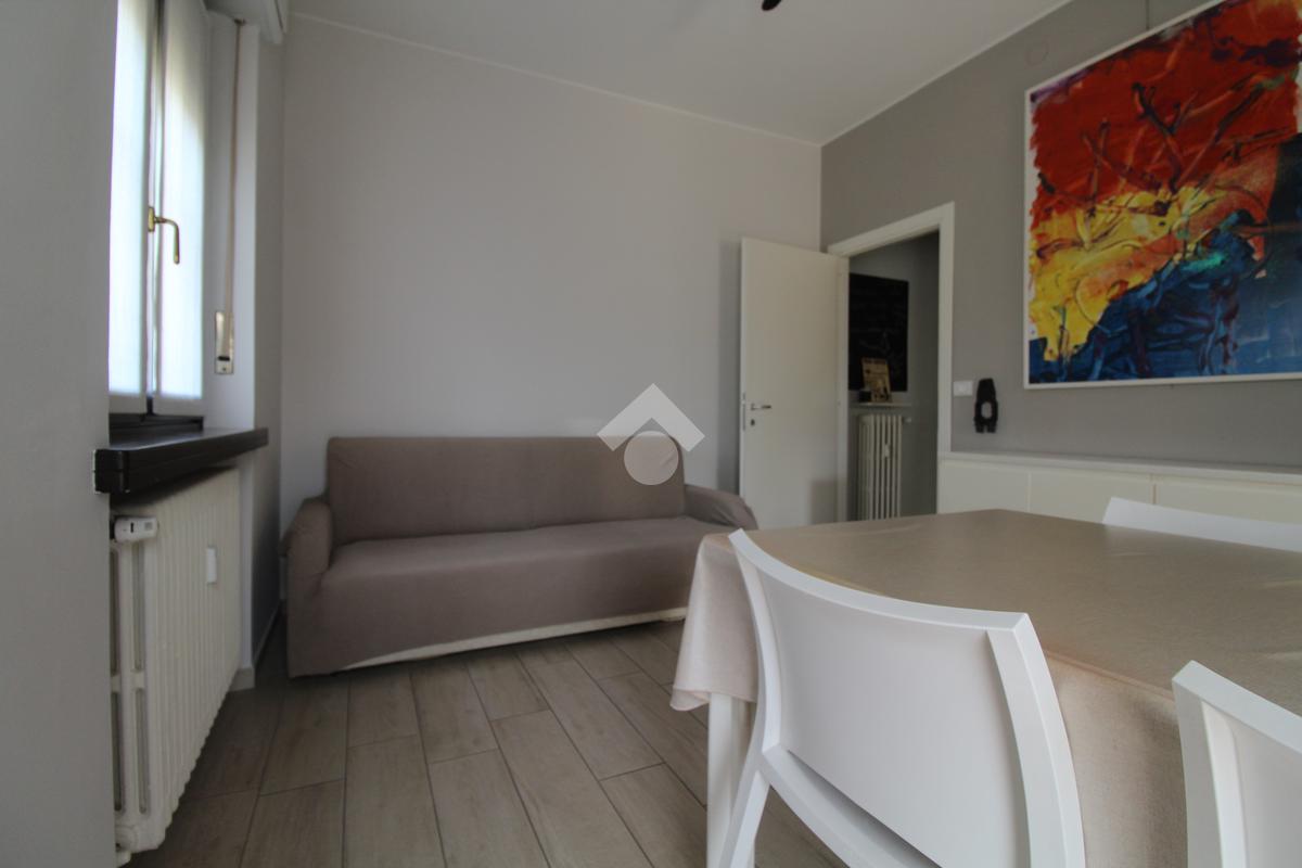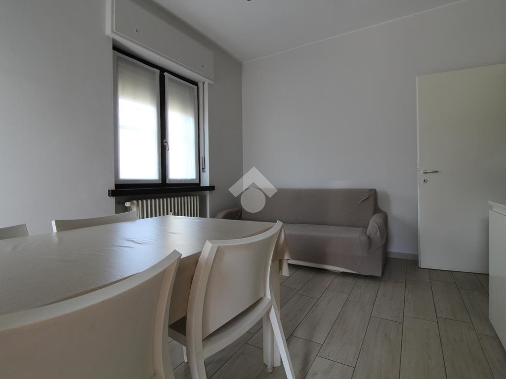 L'ingresso avviene sul disimpegno che collega tutti i locali: il soggiorno con angolo cottura, la camera da letto matrimoniale e il bagno finestrato con doccia.