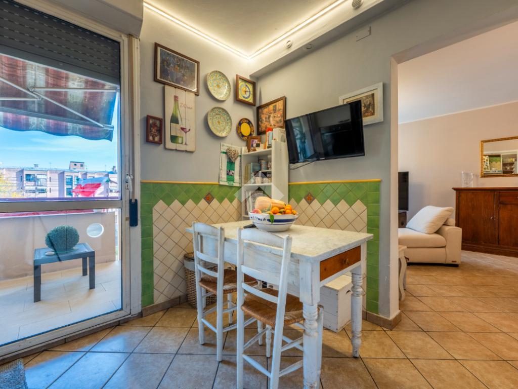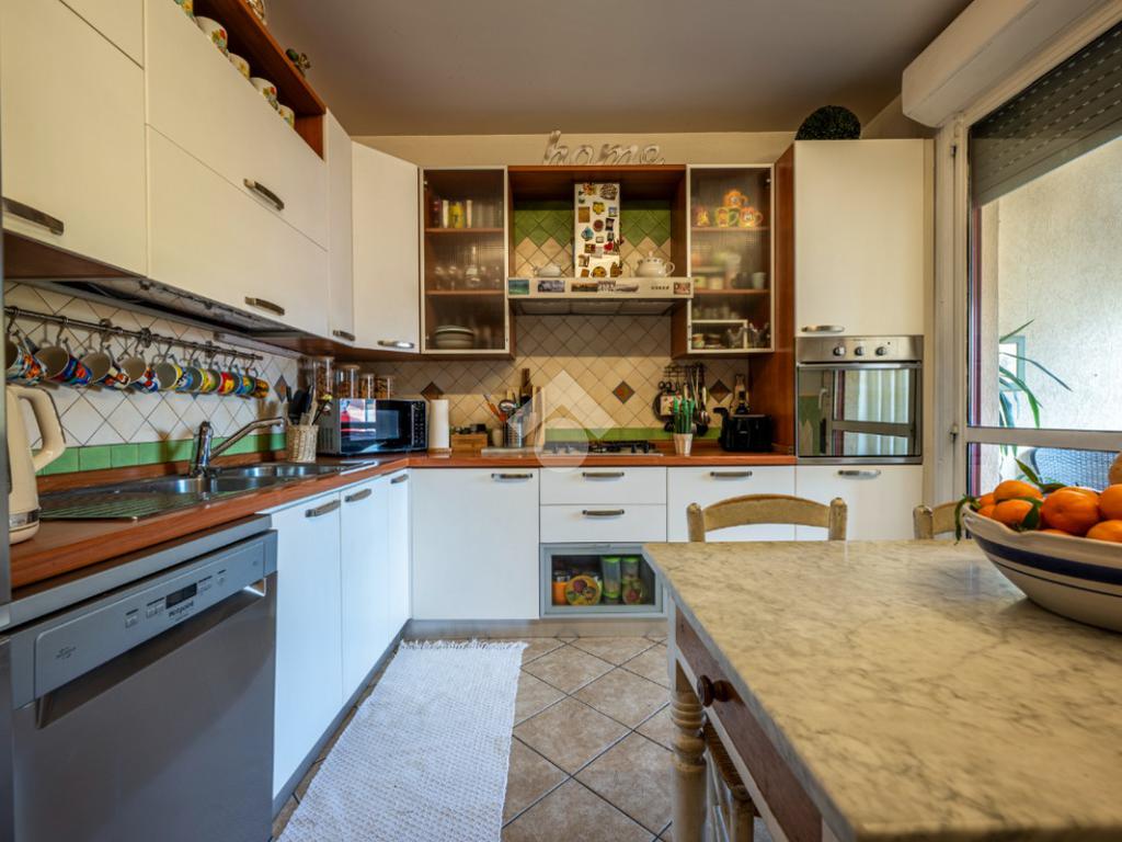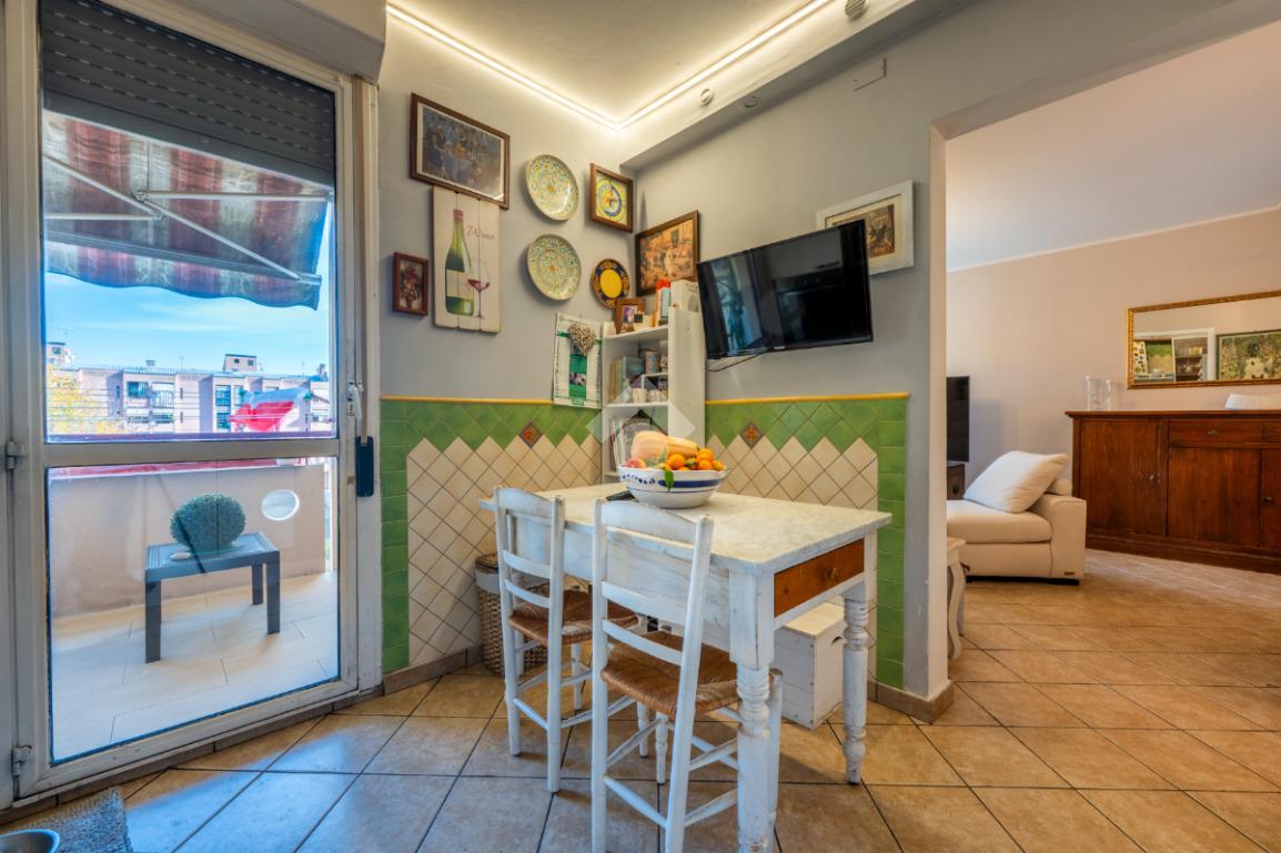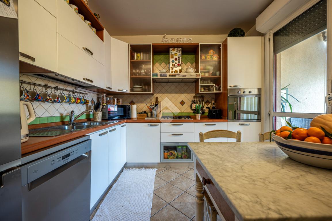 La zona giorno è caratterizzata da ampio salone e dalla cucina abitabile con uscita esterna sul balcone.