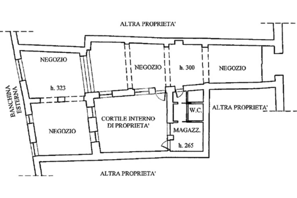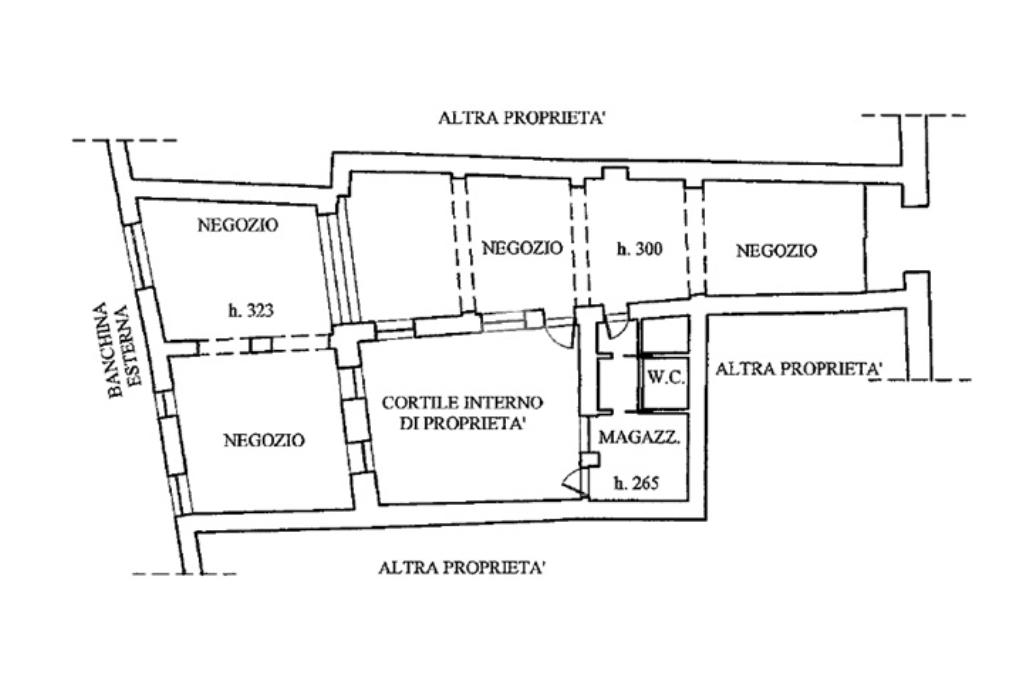 L'immobile, situato al piano terra, è composto da tre ampi locali che si prestano a diverse soluzioni commerciali rendendolo ideale anche come ufficio, completano la proprietà il bagno e uno spazioso cortile interno.