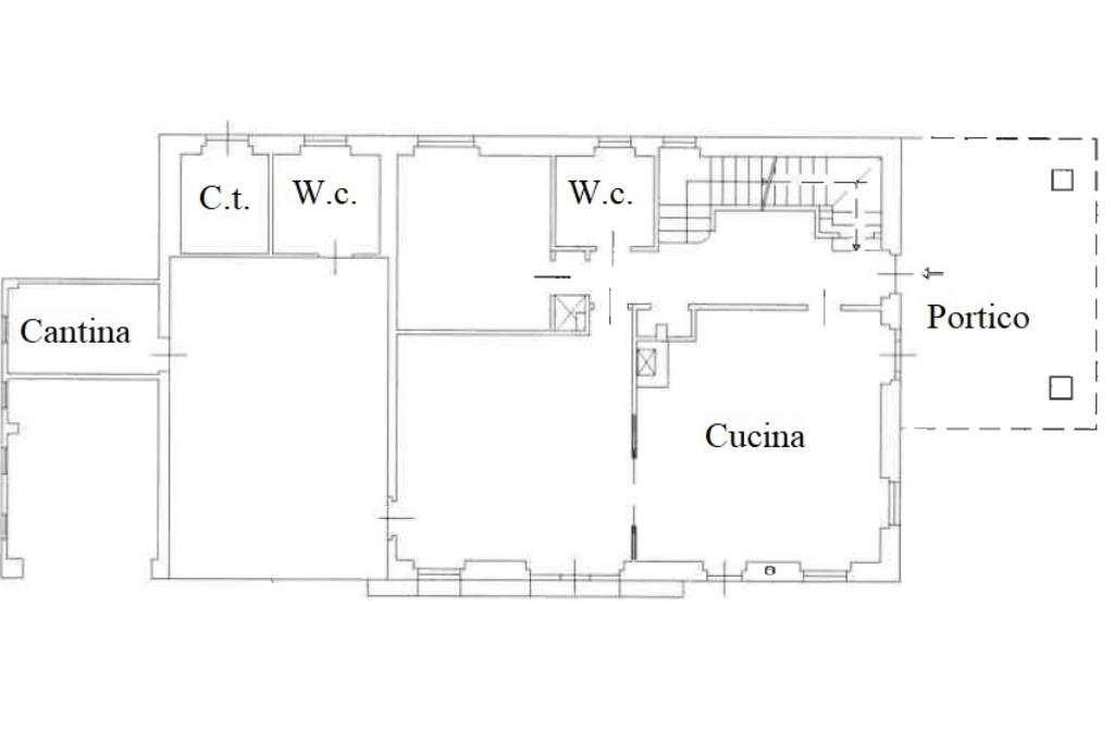 - piano terra: ampio soggiorno, cucina abitabile con uscita esterna sul portico coperto, camera da letto e bagno finestrato;